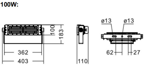 Wodoodporność IPYWFL100W Reflektor LED odpowiedni dla lotnisk, dużych budynków, placów i oświetlenia krajobrazu w kolorze czarnym i srebrnym.
