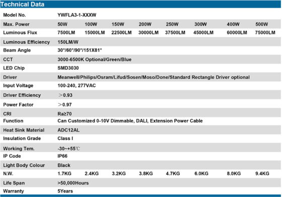 | Numer modelu: | YWFL400W |